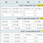발생일: 2011.02.10 문제: 과 같은 태그에서 abc 값을 가져오기 위해, el.attr("href").substring(1) 과 같은 코드를 사용했다. (attr은 현재 사용하고 있는 라이브러리의 속성을 가져오는 메서드) 헌데, IE7 이하에서는 el.attr("href") 값으로 #abc가 아닌 전체 경로가 리턴된다. 어떤 때는 전체 경로가 리턴되고 어떤 때는 직접 기술한 값이 리턴되는데, 정확한 이유는 뭘까? 해결책: URL을 표현하는 속성을 가져올 때에는 몇 가지 주의할 점이 있다. - URL을 표현하는 속성(href, src, action 등)을 DOM Attribute에서 직접 가져오면 속성 값이 전체 경로에 더해져 리턴된다. - DOM Level1의 getAttribute() 메서드를..