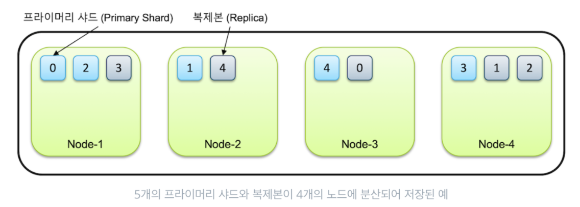 - 처음 생성된 샤드를 프라이머리 샤드(Primary Shard), 복제본은 리플리카(Replica)라고 함